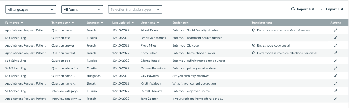 We now provide translations for Self-Scheduling and Appointment Request forms. Standard content on both forms is pre-translated and ready to use.