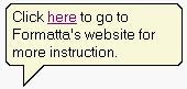 Click <A HREF="http://www.yourwebsitehere.com">here</A> to go to Formatta's website for more instruction. |