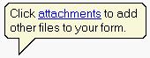 Click <A HREF="cmd://attachments">attachments</A> to add other files to your form. |